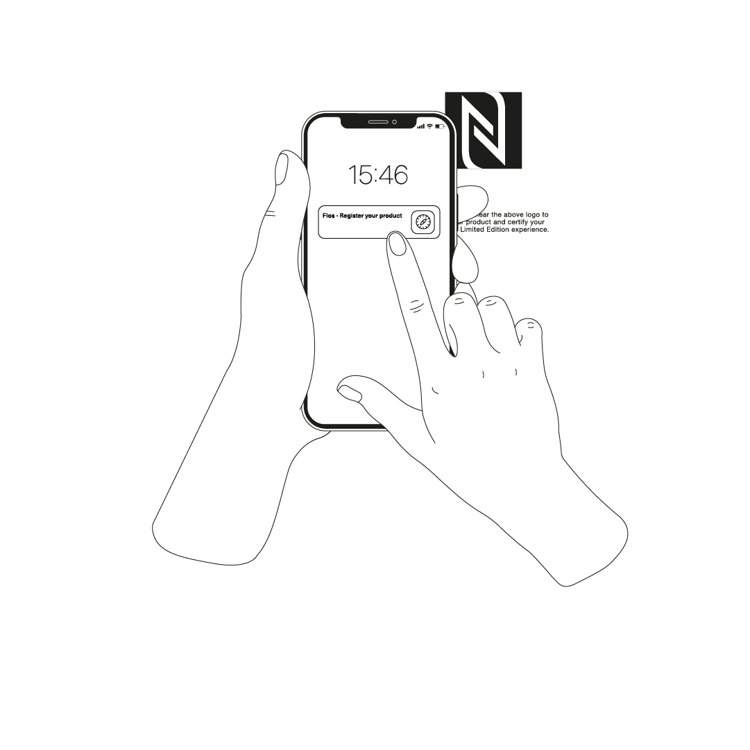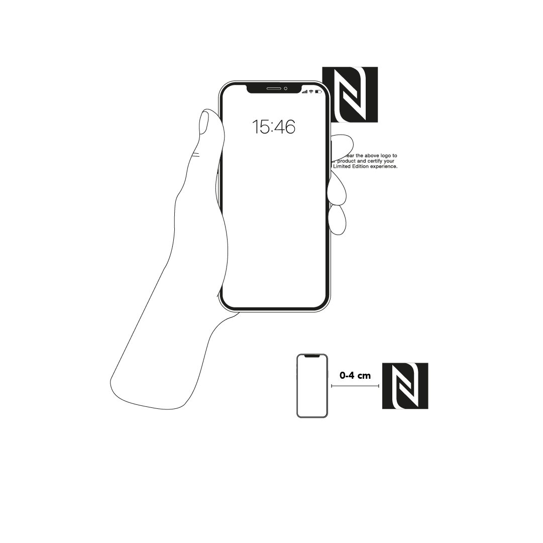 Hold your phone near the NFC tag to register and certify your product. You may need to activate the NFC reader on your device or use a reader app.